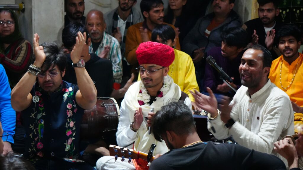 29 नवम्बर (शनिवार) को श्री गोपीनाथ जी मंदिर परिसर में संगीतमयी संकीर्तन का भव्य आयोजन हुआ। प्रसिद्ध सिहरा ब्रदर्स — श्री संजय सिहरा एवं श्री ज्ञान सिहरा द्वारा प्रस्तुत भावपूर्ण भजनों ने पूरे मंदिर में भक्ति और आनंद का विशेष माहौल निर्मित किया। उनके सुरों से गूँजता “श्री कृष्ण गोविन्द हरे मुरारी…” का स्वर भक्तों को अलौकिक अनुभूति कराता रहा।