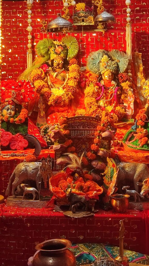 प्रातःकाल परिवार के सदस्यों ने ठाकुर श्री गोवर्धन्नाथ जी मंदिर में विशेष पूजा-अर्चना की। शीत ऋतु को ध्यान में रखते हुए ठाकुर जी को विशिष्ट भोग अर्पित किए गए, और सामूहिक भजन-कीर्तन के बीच वातावरण दिव्य बना रहा।