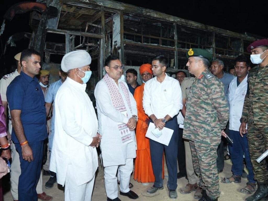 CM भजनलाल दुर्घटनास्थल पर मौका मुआयना करते हुए