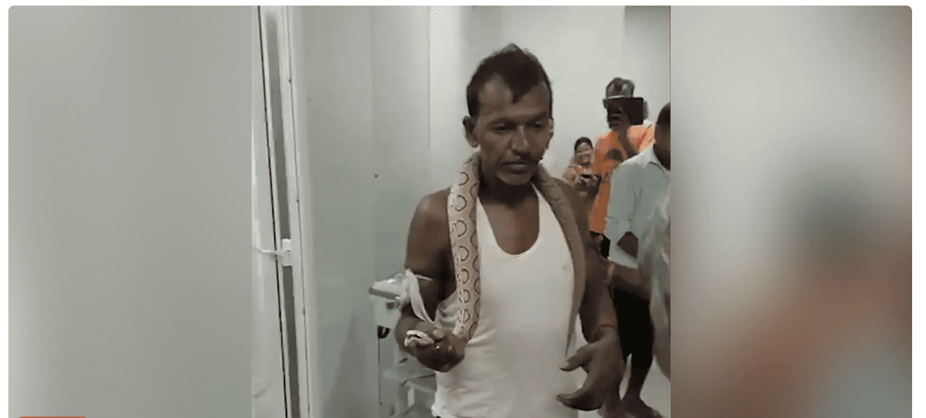 प्रकाश का अगला कदम और भी हैरान करने वाला था। वह ज़मीन पर लेट गया और सांप को अपने दाहिने हाथ में कसकर पकड़े रखा। एक अन्य वीडियो में उसे स्ट्रेचर पर लेटे हुए देखा गया, जबकि उसके हाथ में अभी भी सांप था। हालांकि वह दर्द में दिख रहा था, फिर भी उसने सांप को नहीं छोड़ा।